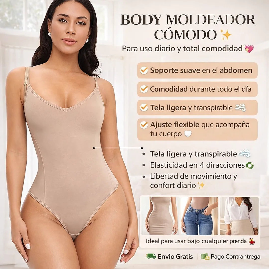 Body moldeador de uso diario con tela ligera y transpirable 🌬️ y elasticidad en 4 direcciones 🔄. Ideal para usar bajo vestidos, blusas y jeans.